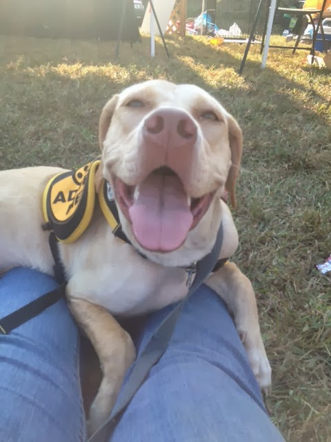 Poppy is waiting for the dog walking group to gather. Besides meeting the rest of the group, she was pretty excited about the treats!